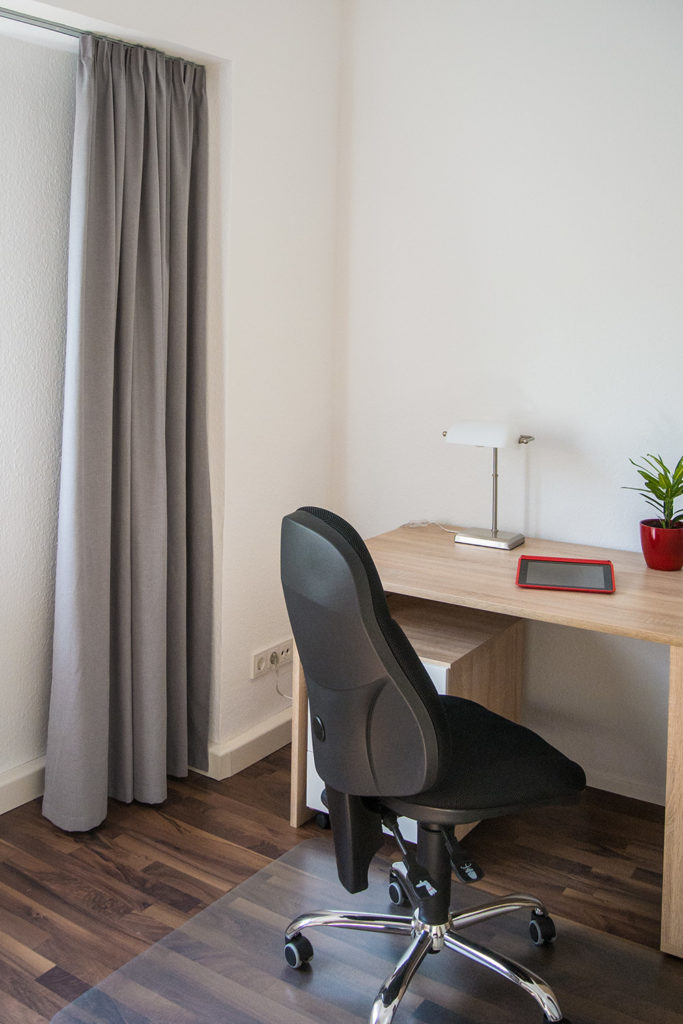 Die WG-Zimmer und Gemeinschaftsräume sind vollständig möbliert und ausgestattet (Details siehe unten und auf den Bildern). Jedes WG-Zimmer verfügt über einen kabelgebundenen Internetanschluss im Zimmer und einen zusätzlichen WLAN-Hotspot im Flur.